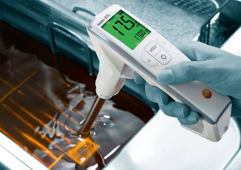 当您需要确保食品质量,同时满足HACCP有关食品的法规时,德图是您可靠的合作伙伴。我们的温度计、数据记录仪和食用油品质检测仪已经在实践中得到证明,是餐馆、食堂和快餐服务的标准设备。现在就为您选择合适的测量仪器。